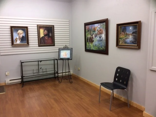 The Northwest Minnesota Arts Council (NWMAC) is pleased to announce an exhibit of Oil Paintings by Dale Mackowick in our East Grand Forks gallery. The exhibit opens Wednesday, December 7th and is open to the public until Sunday, January 15th, 2017. Mr. Mackowick, of Fertile, MN, is known for his establishment, Mac's Cafe, and his large stagecoach mural that graced its wall. This exhibit features Mr. Mackowick's Minnesota wildlife and portraits.An army veteran of the Vietnam war, Dale Mackowick attended the Minneapolis School of Art for two years majoring in oil painting before being drafted. His art interest began in childhood when he received a kit containing drawing books and supplies, and continued throughout secondary school. Dale married his high-school sweetheart, Carol Austinson, before going overseas, then upon return they purchased their first business which grew into Mac's Cafe. He painted his well-known mural for their establishment, but all the while, Dale longed to paint.In 2005, when Mr. Mackowick retired and sold his cafe, he built a studio at home and returned to oil painting as he desired. Like Dale, his wife Carol is also a gifted oil painter and often joins him. Mr. Mackowick's subjects embrace wildlife action scenes of bucks, wolves, moose, bears, and portraits created with high proficiency. Carol's influence may be seen in his only floral, "Mom's Garden."A reception for Dale Mackowick will be held Saturday, December 10th from 3:00 to 4:00 pm.