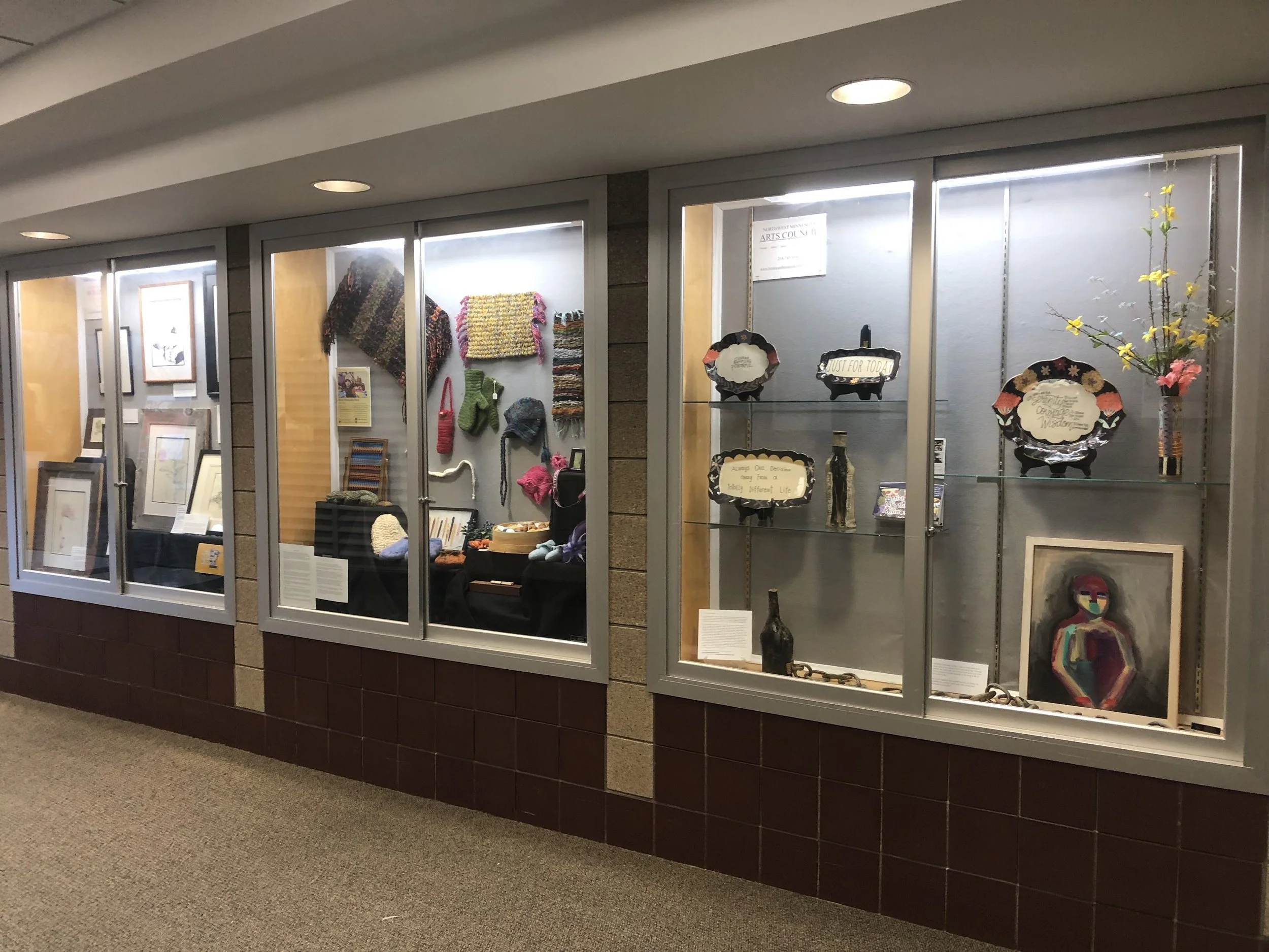 The NWMAC coordinates 3 display cases outside of our exhibit space at NCTC. Currently works by Artists Cindy Kolling, Aliza Novacek-Olson, and Kate Hammer are displayed.