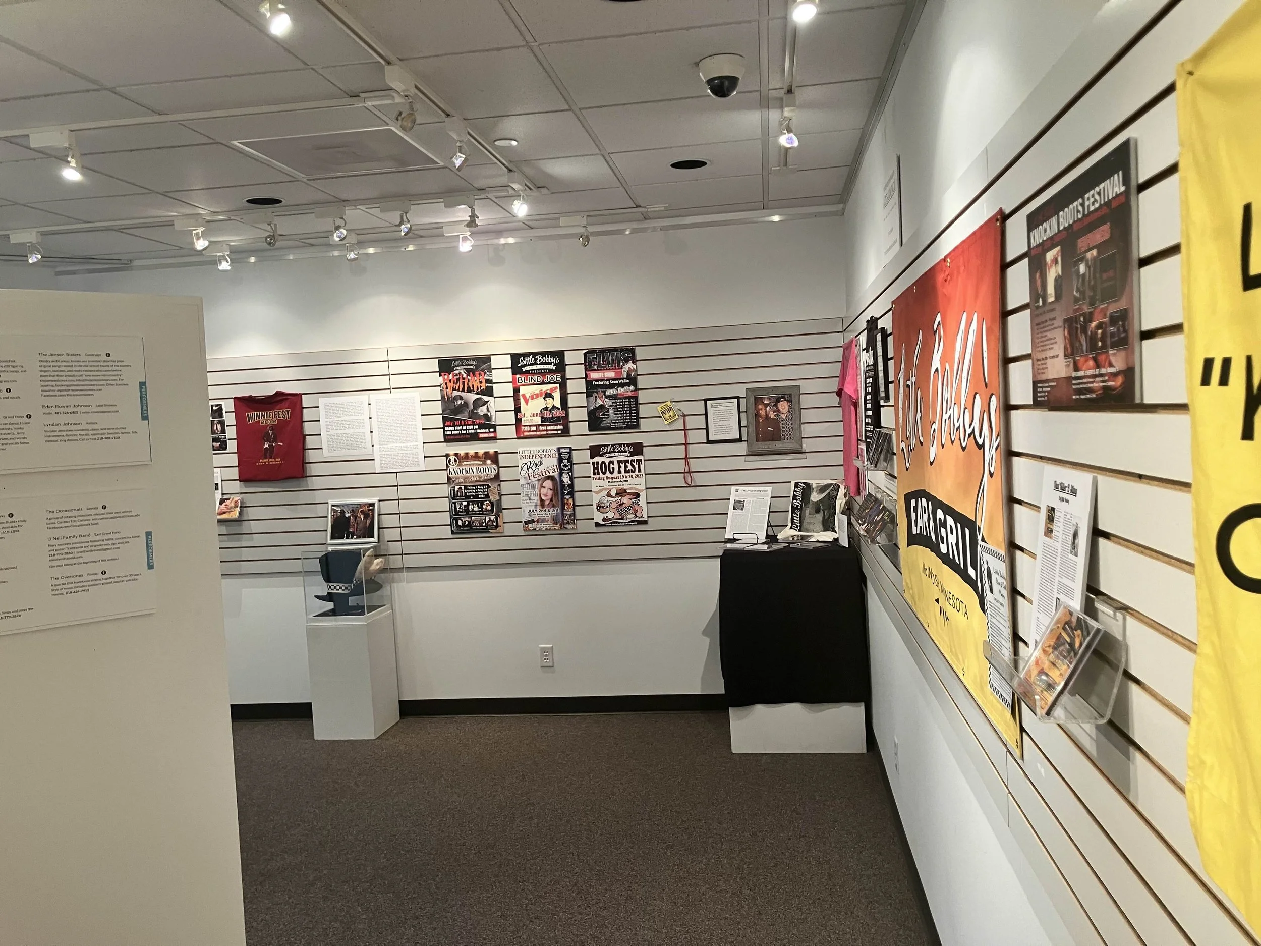 In addition to Little Bobby and Maury Finney, other artists and groups featured in the exhibit include The Dank, Project: Constellation, Northern Valley Youth Orchestra, Anthony Diaz of Crookston, The O’Neil Family Band of East Grand Forks and Daniel Knight of Grand Forks. Items in this exhibit include posters, awards, newspaper articles, photos, albums, clothing and other merchandise.
