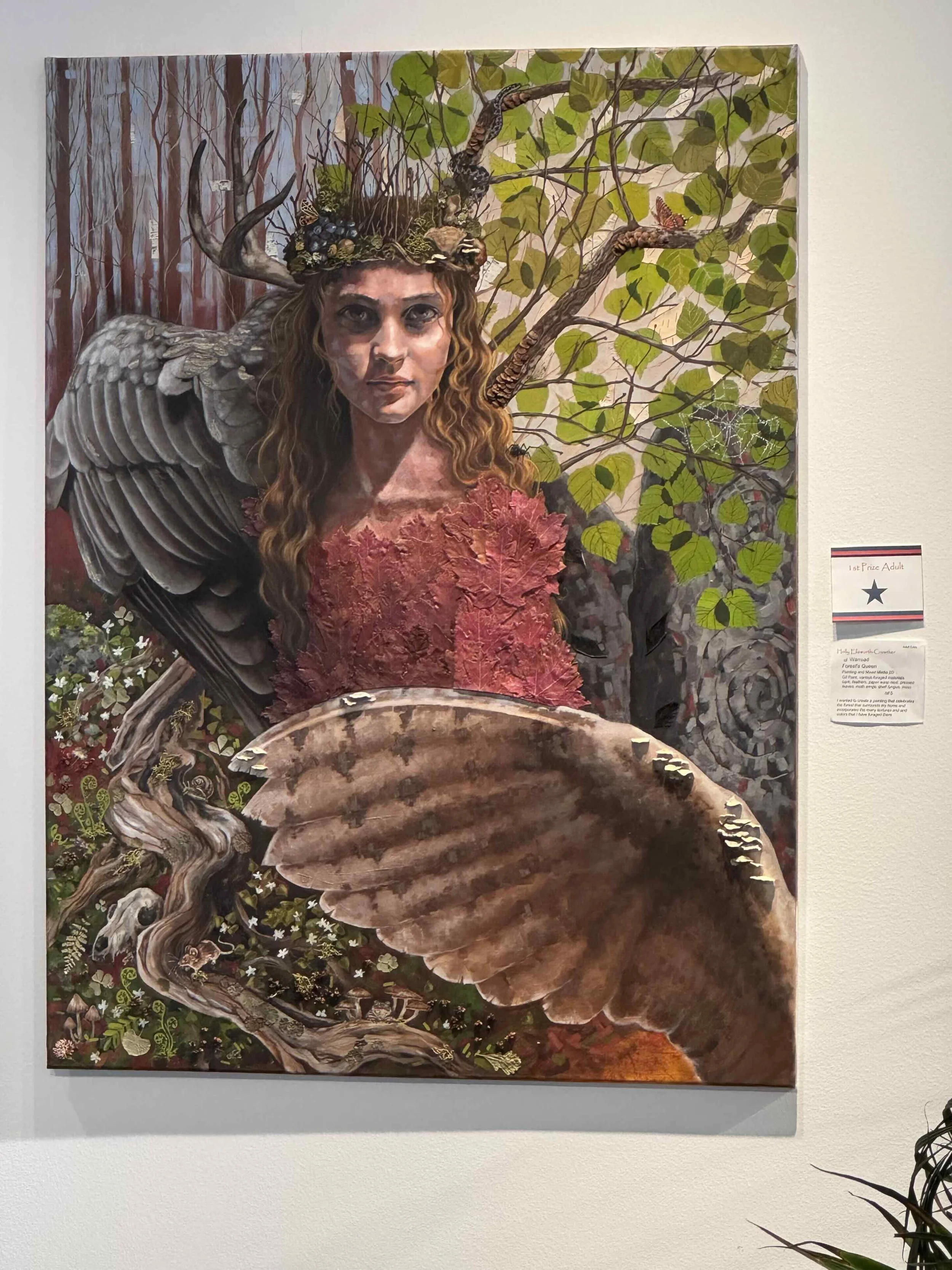 1st Place $500: Holly Ellsworth-Crowther of Warroad in painting with mixed media for “Forest’s Queen"