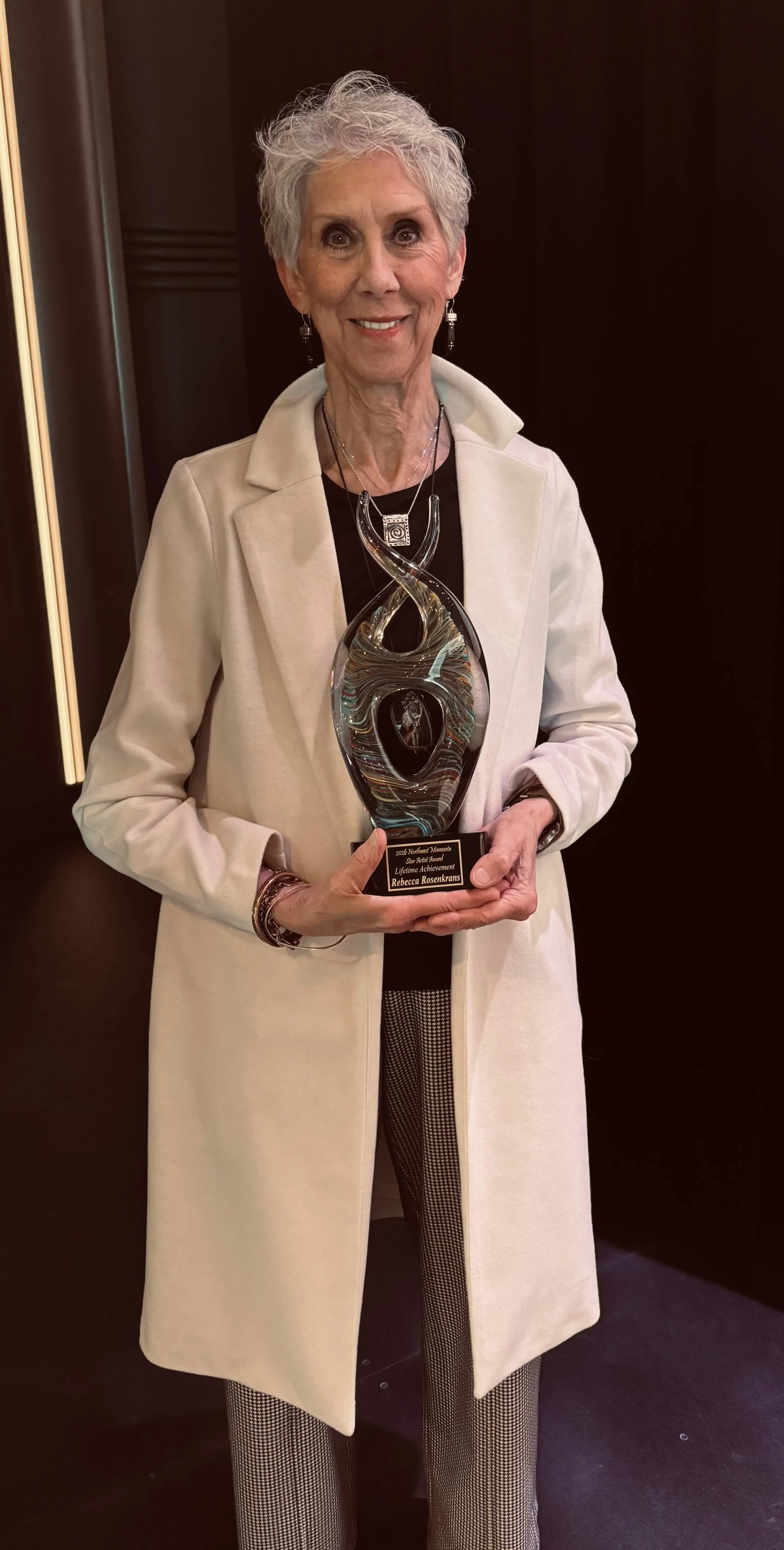 The Northwest Minnesota Arts Council is excited to announce that Rebecca (Becky) Rosenkrans of Roseau received the Northwest Star Award. The award was presented to Rosenkrans on Saturday, April 25 at Warroad RiverPlace in Warroad during the NW Art Exhibit Awards Reception and Program.