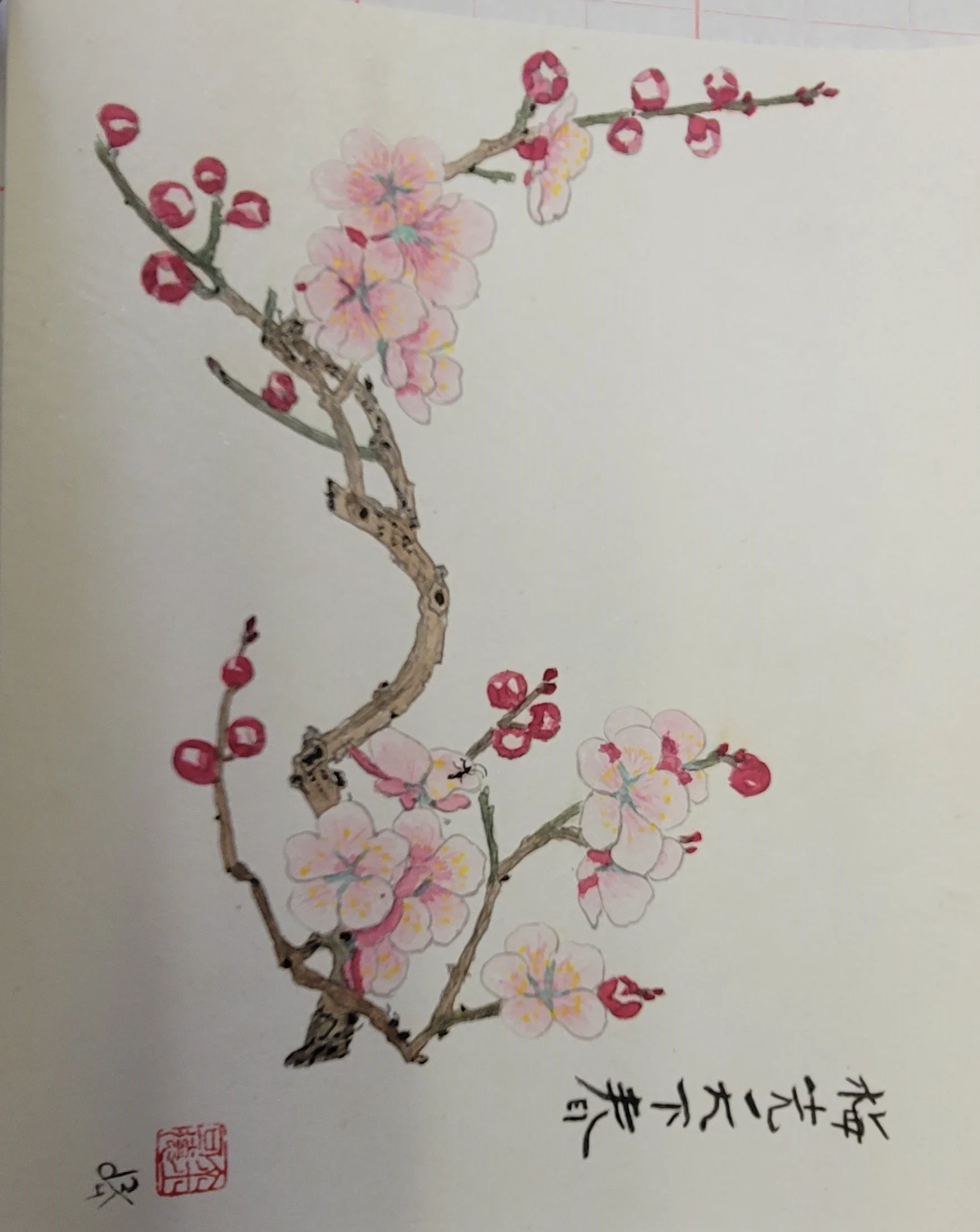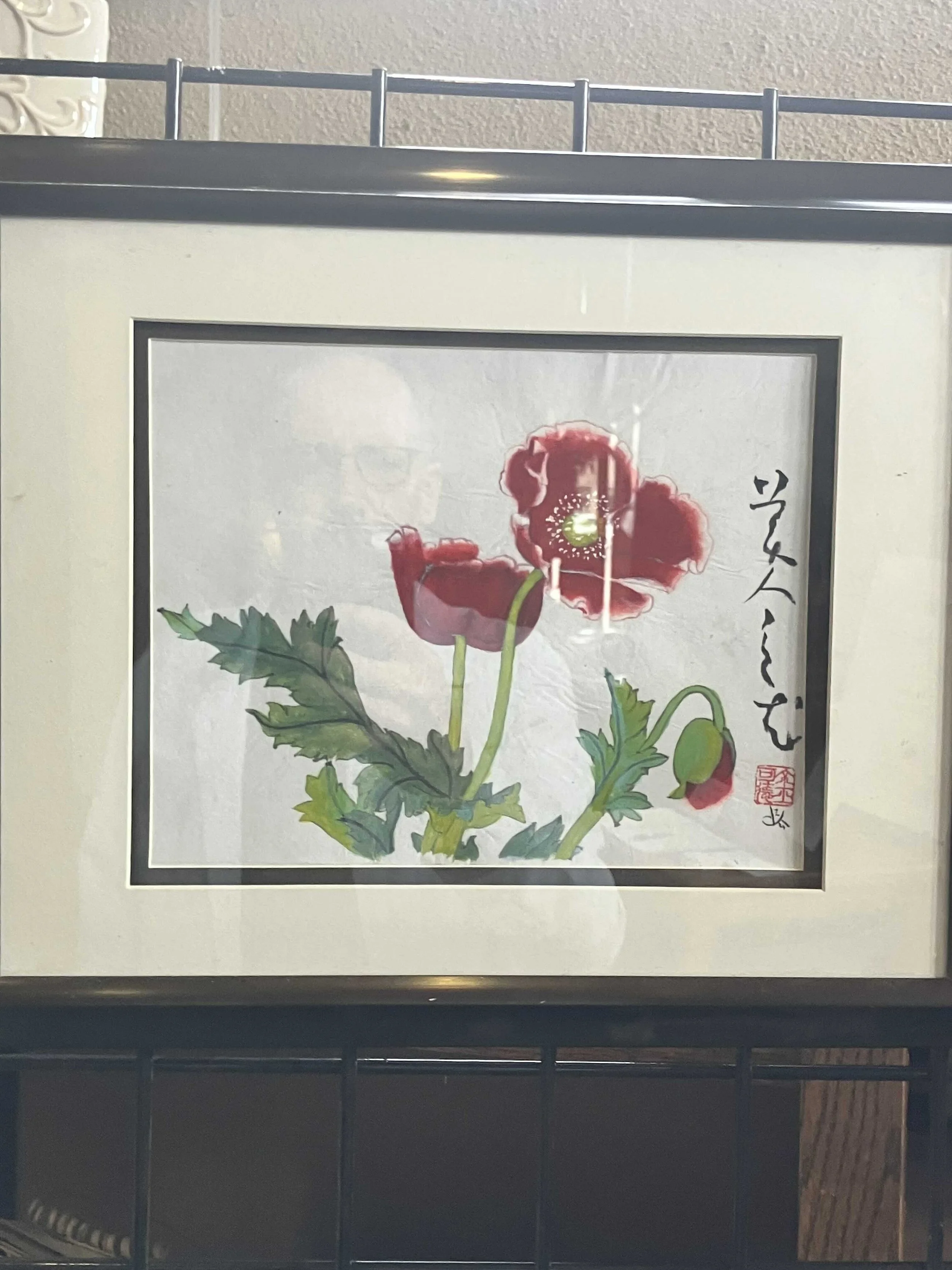 From boilermaker to grain farmer to customs officer at the US border, Dennis Kinkead’s interests and abilities know no bounds. A native of Aitken, Minnesota, he has always had a passion for learning and new experiences. Inspired and taught by his father-in-law in the late 1990s, Dennis started learning the craft of metalworking. His first large project was a coffee table that he handcrafted entirely on his own, including all the jigs and fixtures. After taking home first prize at the county fair, Dennis knew he had found a new art form to be passionate about. His work progressed over the years, including metal roses, the front railing on his family home, a hall table with matching mirror, and other pieces of household furniture. He soon shifted gears into a more natural and mythical theme including birds, skull heads and dragons. Recently, Dennis signed up for an online art class where he has been honing his drawing and painting skills. Today, his art is distinctly influenced by Asian culture as evidenced by the images of koi fish, blossoming trees, and Chinese and Japanese characters. When asked what inspires his love of Asian imagery, he simply replied, “I just like it.”
