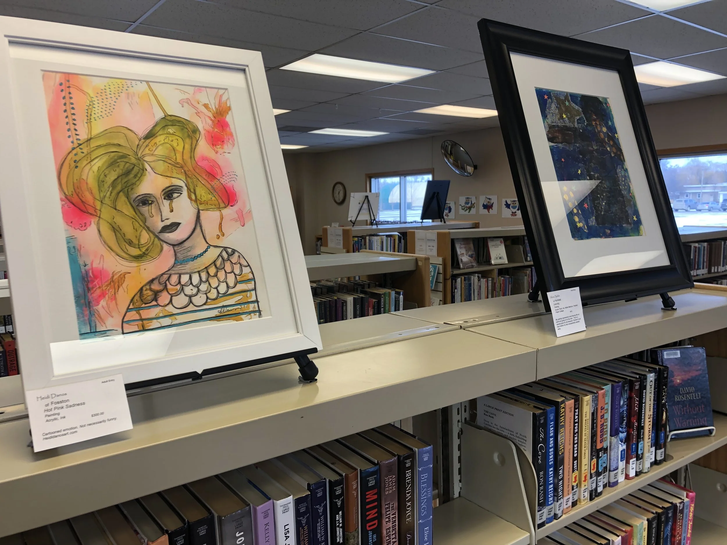 The Northwest Minnesota Arts Council (NWMAC) sponsors an annual Traveling Art Exhibit, which visits northwest Minnesota communities throughout the year. The exhibit includes 17 original pieces of art by regional adult and student artists, chosen from works submitted for our annual juried exhibit. The exhibit is currently at the Ada Public Library until mid-January 2023. Please stop by to see these works of art. Some of these pieces of art are for sale.