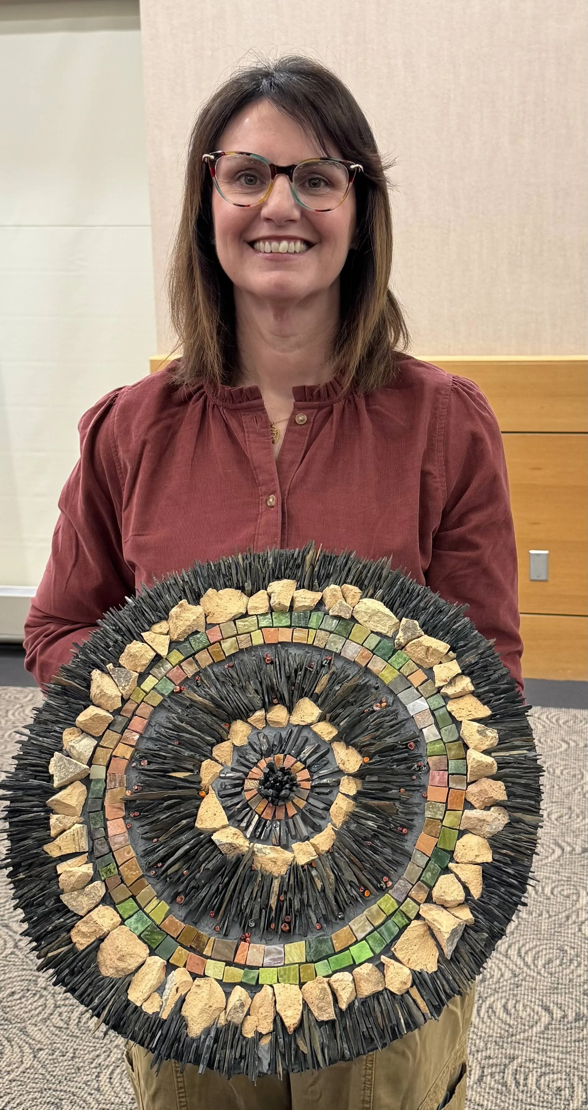 Elizabeth Kitchell-Rockstad is a mosaic artist based in Northwest Minnesota with over 20 years of experience in the medium. A former K-12 art educator of 16 years, Elizabeth’s practice is rooted in a deep understanding of technique and a lifelong commitment to community arts. Her work is characterized by a signature focus on circles and mandalas—universal symbols of unity, eternity, and wholeness.