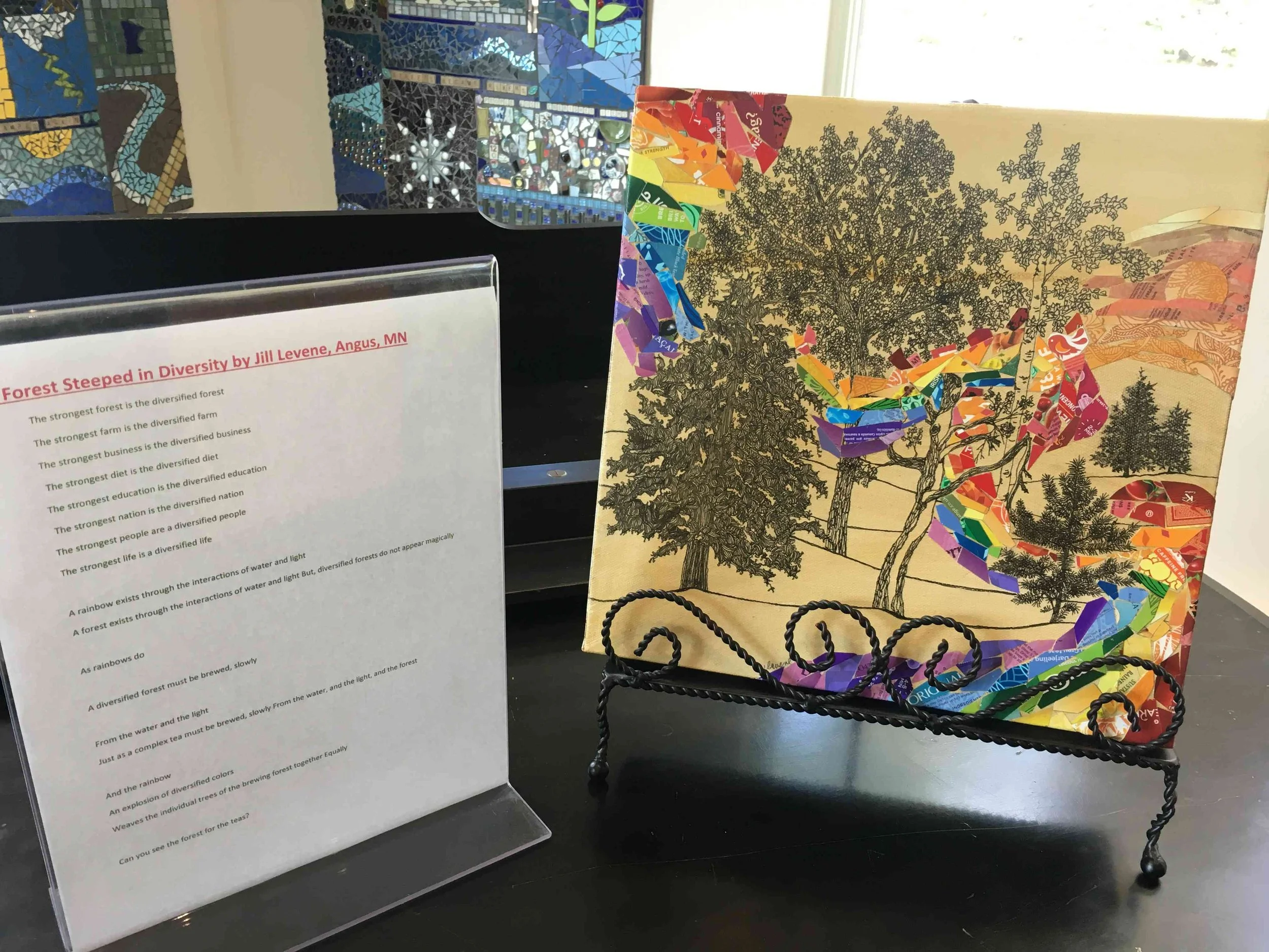 “Gainfully retired from commercial graphic design, I now enjoy the freedom to integrate my world travels with natural history and the environment to create my “inklings” — pen and ink renderings of people, non-human animals, and natural settings. In 2011, I was introduced to New England’s remarkable Folly Cove Fabric Designers of the mid-20th Century. This discovery inspired me in a new direction — block carving and printing on fabric using originally-designed, hand-carved linoleum blocks based on my inklings. Added to this is my interest in repurposing various types of fiber-based food packaging, such as tea and gum wrappers, by incorporating fragments of these colorful containers onto the inklings foundation. The combination of inklings, block printing on fabric, and kitchen-based art led me to my current focus on functional art — hand-painted usable cloth pieces including dishtowels, bandanas, infant swaddles, aprons, and garden flags — anything fabric — with the goal of creating art that is both functional and perpetual, as well as beautiful and one-of-a-kind for the culinarian and collector alike: ‘Hand-printed. One at a time, every time.’”
