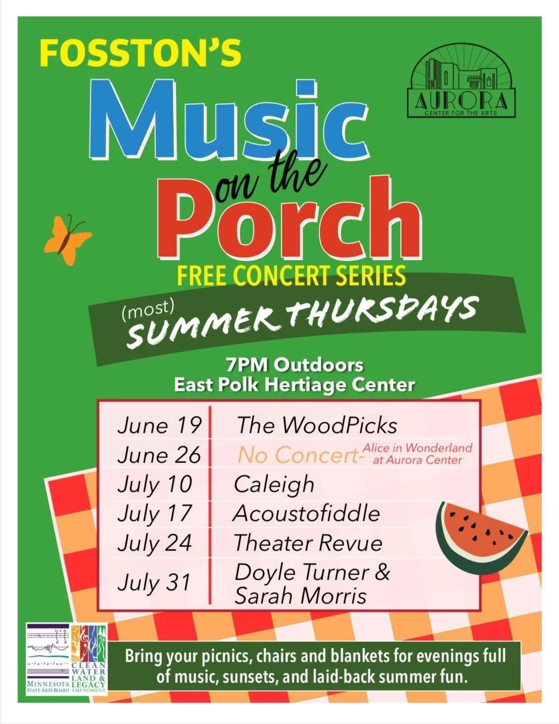 Executive Director of the Aurora Center for the Arts Abby Pearson spoke about her first year as the Executive Director of the organization in Fosston. The organization is celebrating its 45th year. She filled Phil in about recent and upcoming activities, including a summer porch concert series, an Alice in Wonderland play, a youth art exhibit in the gallery, art classes (embroidery with Stephenie Anderson and acrylic portraits with Pamela Edevold), an annual art auction, a lit fest in September, and more! Visit their website at aurorcenterforthearts.org and follow them on Facebook.